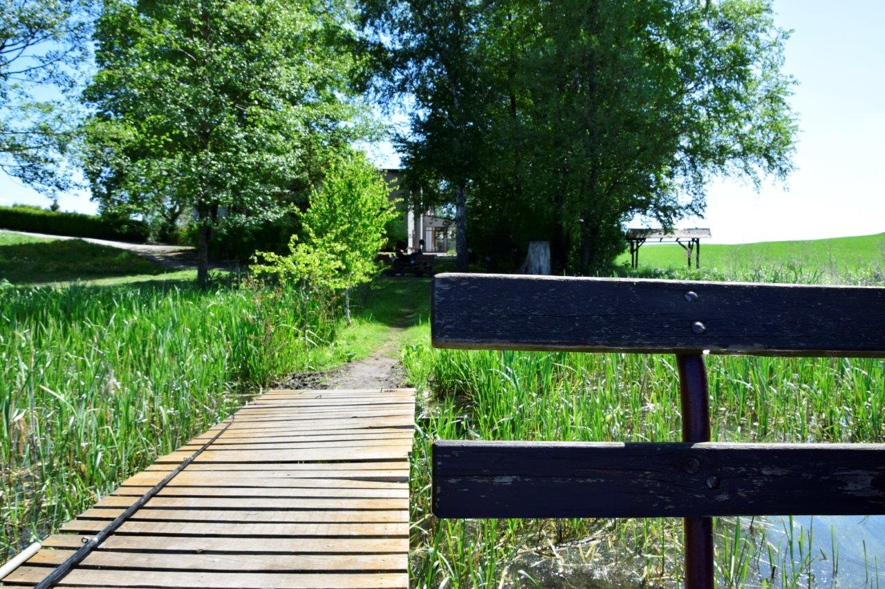 Jezioro, śpiew ptaków i błoga cisza........... . Od strony jeziora rozpościera się widok na dumnie prezentującą się posiadłość, zapewniającą gościom komfortowy wypoczynek. Nasz dom jest w rodzinie od pokoleń i sięga swoją historią ponad 140 lat. To Prawdziwy dom z duszą, który od najmłodszych lat nieustannie kojarzy mi się z zapachem świeżo upieczonego ciasta, gwarnych rozmów i śmiechu, skupiający grono przyjezdnych chętnie zatrzymujących się w naszej nadjeziornej okolicy.